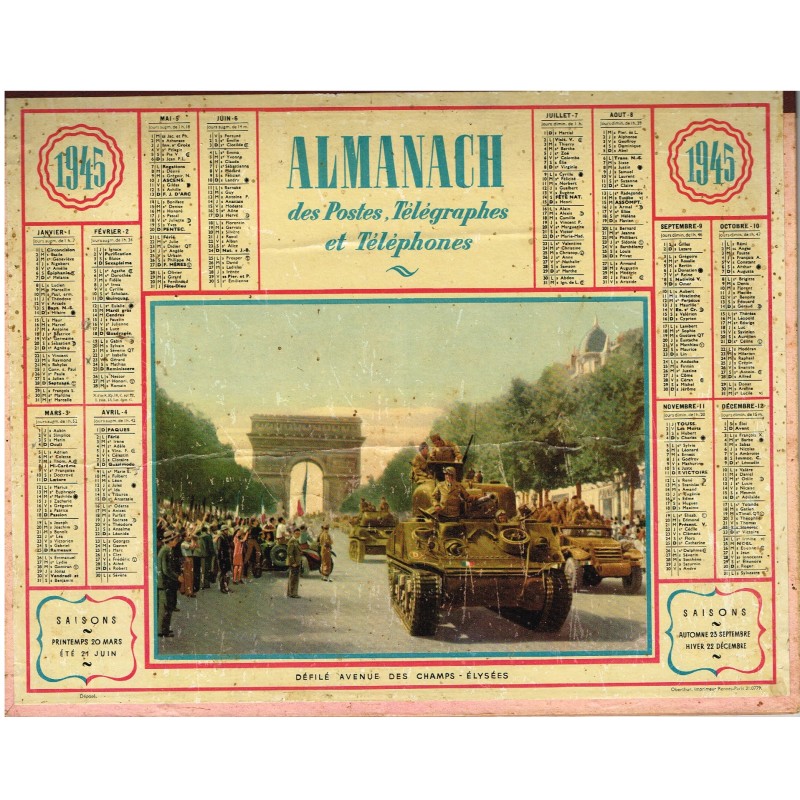 CALENDRIER ALMANACH DES POSTES, TELEGRAPHES, TELEPHONES 1945 - DEFILE MILITAIRE