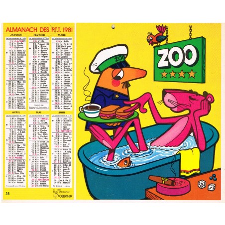 CALENDRIER ALMANACH DES PTT 1981 - LA PANTHERE ROSE