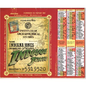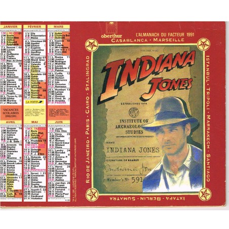 CALENDRIER ALMANACH DU FACTEUR 1991 - INDIANA JONES