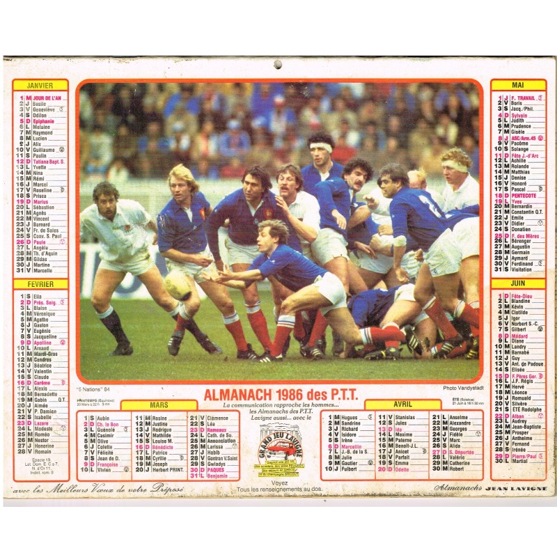 CALENDRIER ALMANACH DES PTT 1986 - FOOT ET RUGBY