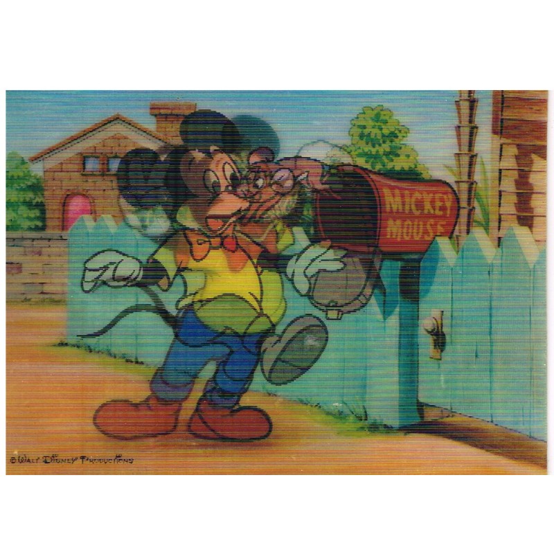 CARTE POSTALE LENTICULAIRE 3D AVEC DEUX VUES DE MICKEY ET UNE SOURIS