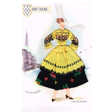 CARTE POSTALE BRODEE HABILLEE - BRETAGNE - COSTUME BIGOUDEN