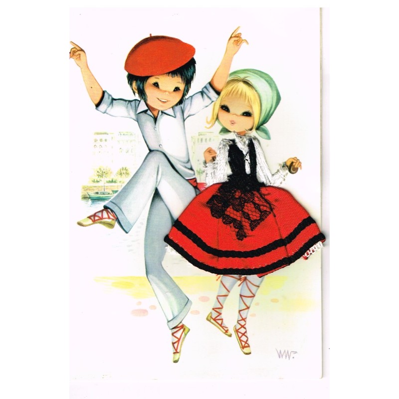 CARTE POSTALE BRODEE-HABILLEE COUPLE DE DANSEURS BASQUES