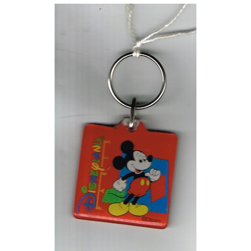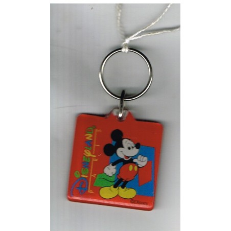 PORTE CLES DISNEYLAND PARIS CARRE EN PVC ROUGE AVEC MICKEY
