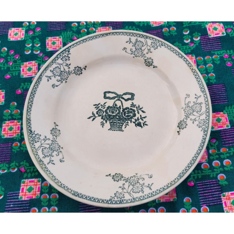 ASSIETTE TERRE DE FER VERTE "PANIER DE FLEURS" - SAINT AMAND