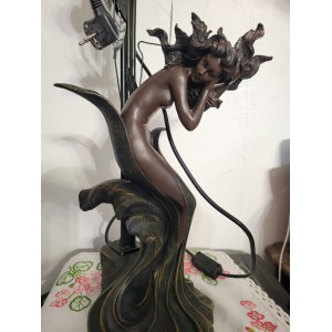 LAMPE ART NOUVEAU signée ART NOUVEAU FRANCAIS : "Vénus née de l'écume des flots".